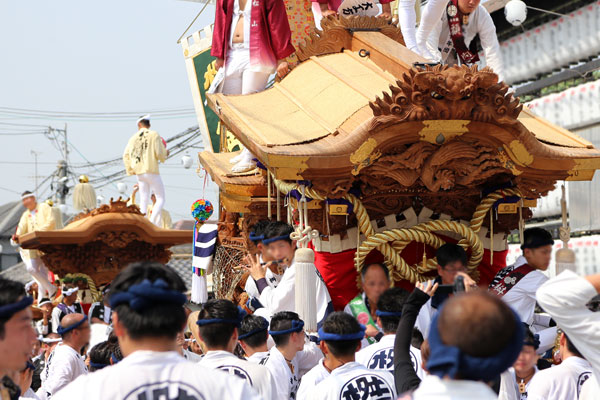 多治速比売(たじはやひめ)神社に宮入りする3町(和田、伏尾、平井)のだんじりが見送りに来ます。久世地区9台のだんじりをご紹介します。